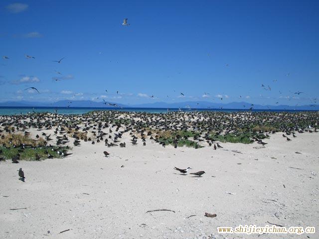 珊瑚島是無數(shù)海鳥的棲息地,成群的海鷗遮空蔽日,為大堡礁增添了無限生機(jī)。這里聚集的鳥類有240多種。如燕鷗、黑燕鷗、海鷗、鹱(音hù)、軍艦鳥、鰹鳥、大海雕等常在珊瑚礁面聒噪。