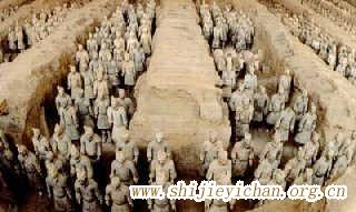 1974年,中國考古工作者把沉睡千年的7000多件陶捅發掘出土,被認為是古代的奇跡,是本世紀最壯觀的考古發現。秦兵馬俑,無論在數量上、質量上,還是在考古發現上,都是世界上所罕見,它對于深入研究公元前二世紀秦代的軍事、政治、經濟、文化、科學和藝術等提供了極為珍貴的實物材料。它既是中國人民的藝術珍品,又是世界人民的共同文化遺產。
