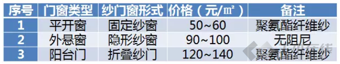 住宅項目一般在住房戶內部分設置紗門窗,公共部分不設置。如有設置,成本一般是門窗成本的3%左右,受外門窗開啟面積大小的影響。