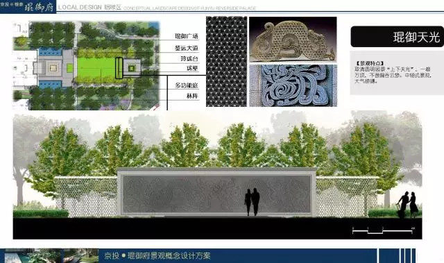 以“瓏”為景觀主題,整體上采用軸點結合的景觀格局。結合對瓏文化的理解,打造尊貴、大氣的景觀空間。營造整體自然、舒適的景觀環境。軸線景觀結合情境體驗性的節點景觀,塑造具尊貴感唯一性的景觀空間。