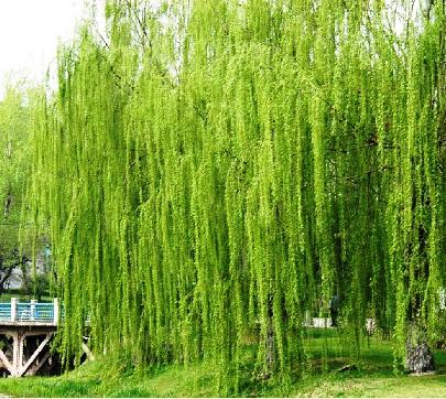 產于分布長江流域及其以南各省區平原地區,華北、東北有栽培。垂直分布在海拔1300米以下,是平原水邊常見樹種。亞洲、歐洲及美洲許多國家都有悠久的栽培歷史。楊柳科柳屬落葉喬木,高達18m,胸徑1m,樹冠倒廣卵形。小枝細長下垂,淡黃褐色。葉互生,披針形或條狀披針形,長8-16cm,先端漸長尖,基部契形,無毛或幼葉微有毛,具細鋸齒,托葉披針形。雄蕊2,花絲分離,花藥黃色,腺體2。雌花子房無柄,腺體1。花期3-4月;果熟期4-5月。目前選育的觀賞品種很多如金絲垂柳無性系J1010、J1011、J842,垂爆109柳等。