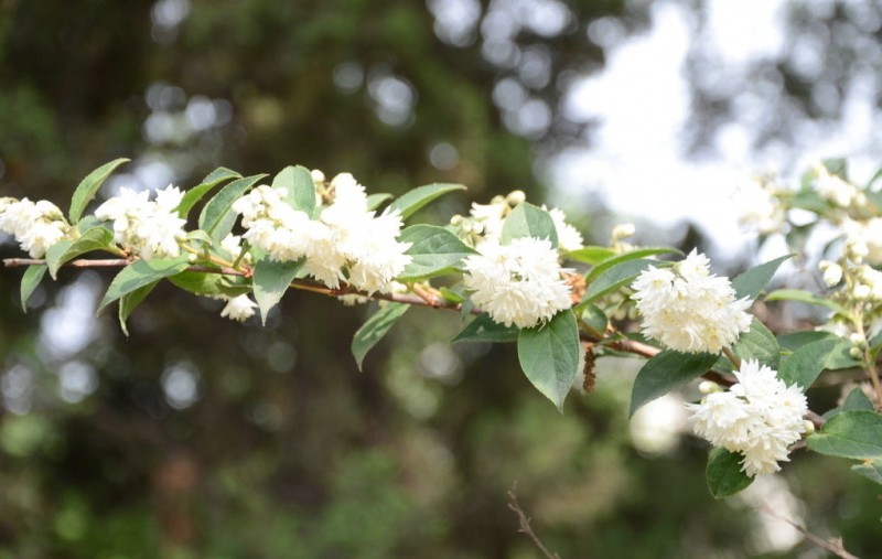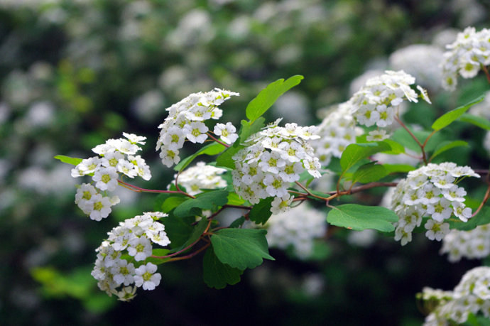 初夏白花滿樹,潔凈素雅,其重瓣變種更加美麗。