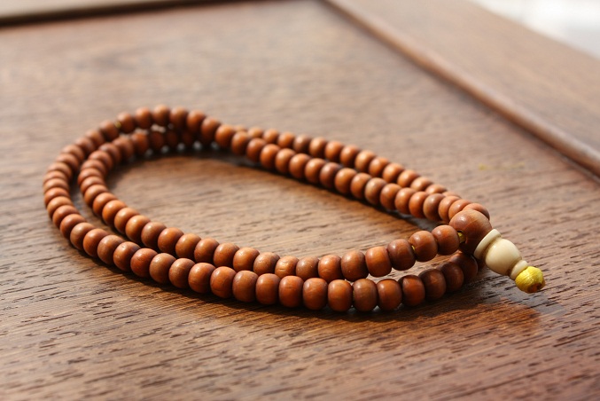 六道子是一種灌木,葉小無刺,常叢生于山陰。其桿無心有結,每結自成紋路。紋路豎行,均為六道。灰皮去后,木面光滑,呈白色微黃。六道子生長緩慢,木質堅韌,木面光滑細密,且不易折。強力折之,斜茬似刀,鋒利如刃。它是家家喜用之物,用以作叉齒、耙齒,具有鐵制叉耙難有的優點。握之不冷不熱,提之不輕不重,堅韌如鐵,彈力如藤,為眾多人所喜愛。代表文殊的六把慧劍之五臺山六道木佛珠。這種珠十分平宜樸實,但又表義了大智文殊之加持,所以特別受學佛之信眾歡迎像征六道輪回,帶此珠辟邪,平安,得大吉祥!