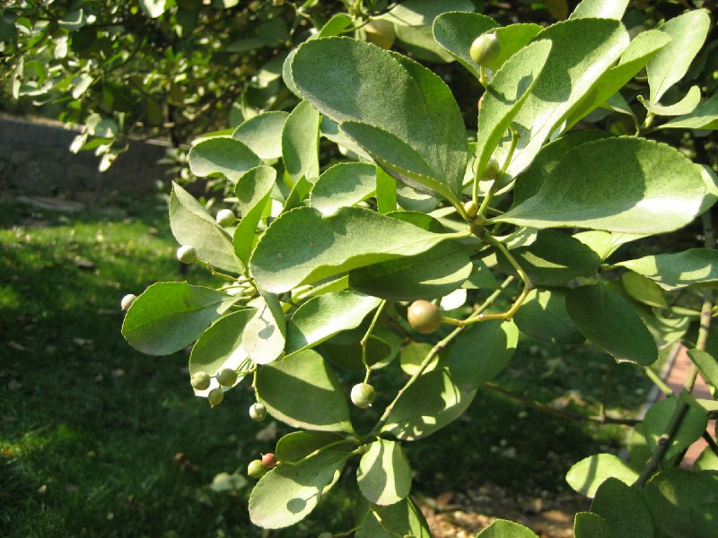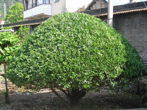 形態(tài)特征 常綠灌木或喬木。莖和小枝四棱形,有短柔毛。葉對(duì)生,革質(zhì),橢圓形或卵圓形,表面有柔毛,背面無(wú)毛?;ù厣谌~腋或枝條頂端,4月開(kāi)花,花淡黃綠色,沒(méi)有花瓣,有香氣。果球形,9——10月成熟。