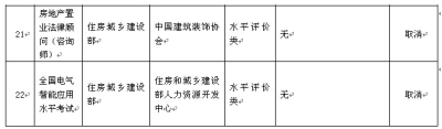 一、國務院決定取消的建筑保溫工程項目經理等22項職業資格(見附件),均為我部有關直屬單位、部管社團自行設置的、沒有法律法規依據的水平評價類職業資格。各相關單位要立即停止開展與這些職業資格相關的評價、認定、發證等工作,也不得以這些職業資格的名義開展培訓活動,或以其他方式變相開展與這些職業資格相關的活動。