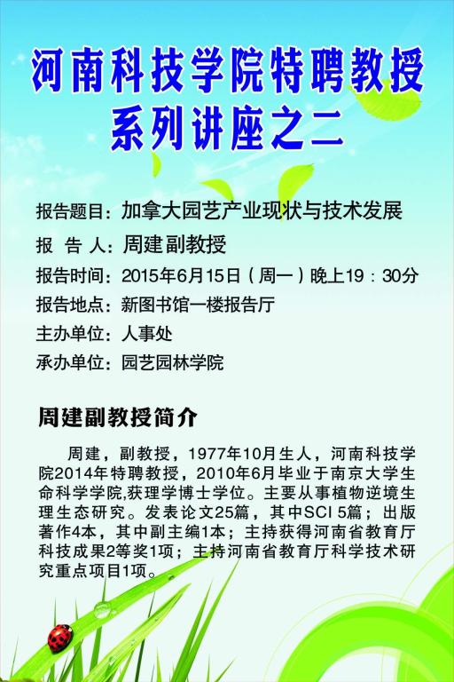 河南科技學(xué)院特聘教授系列講座之二:加拿大園藝產(chǎn)業(yè)現(xiàn)狀與技術(shù)發(fā)展